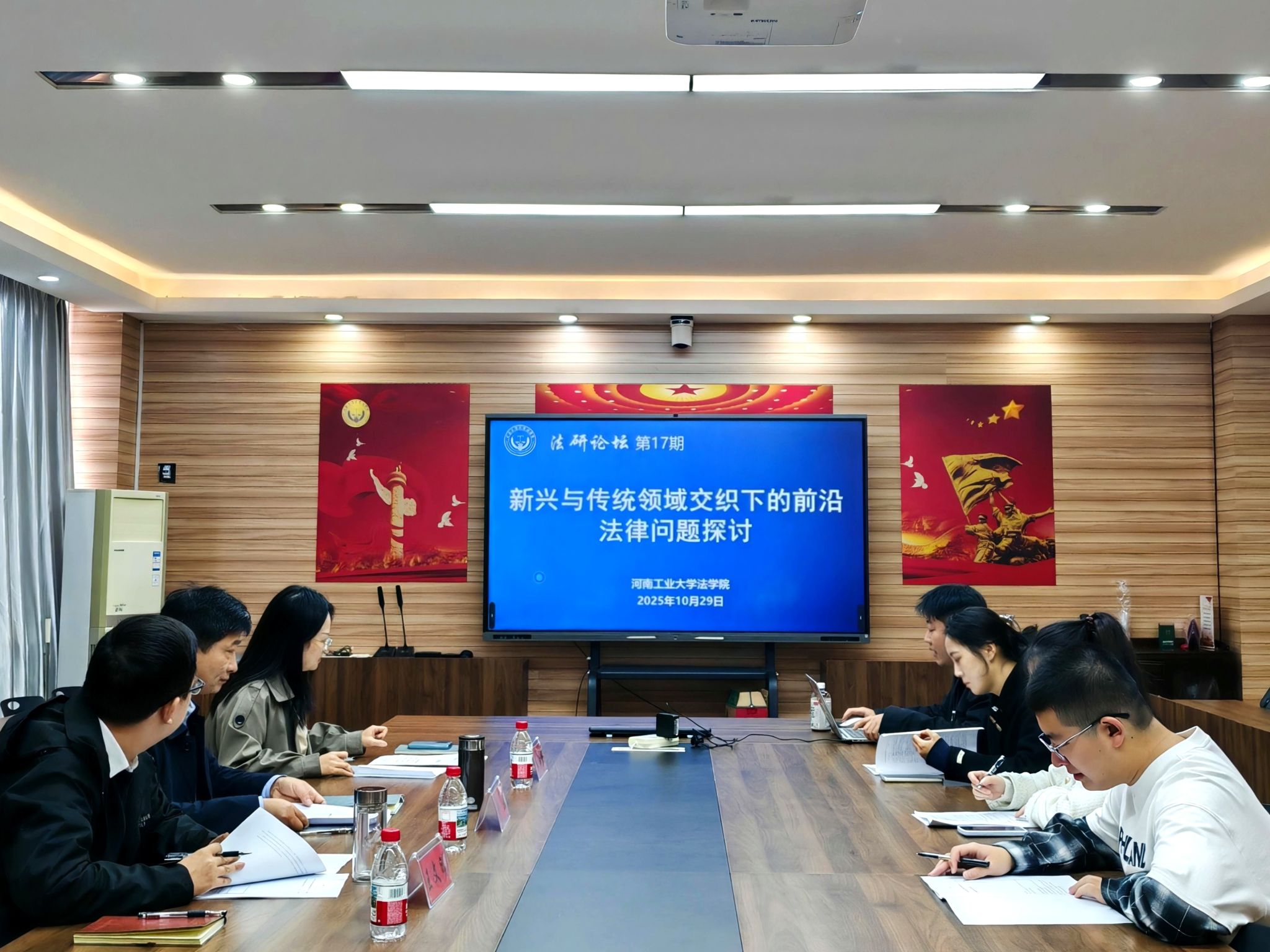 在3424会议室成功举办“法研论坛”第17期学术研讨会。本次会议邀请硕士研究生导师许文教授、硕士研究生导师南海燕副教授、硕士研究生导师王文明博士担任评议人。2024级法学硕士研究生涂思雨、陈怡帆、李腾围绕“新兴与传统领域交织下的前沿法律问题探讨”做主题分享。2024级、2025级硕士研究生参加会议。会议由2024级法学硕士研究生张璇主持。