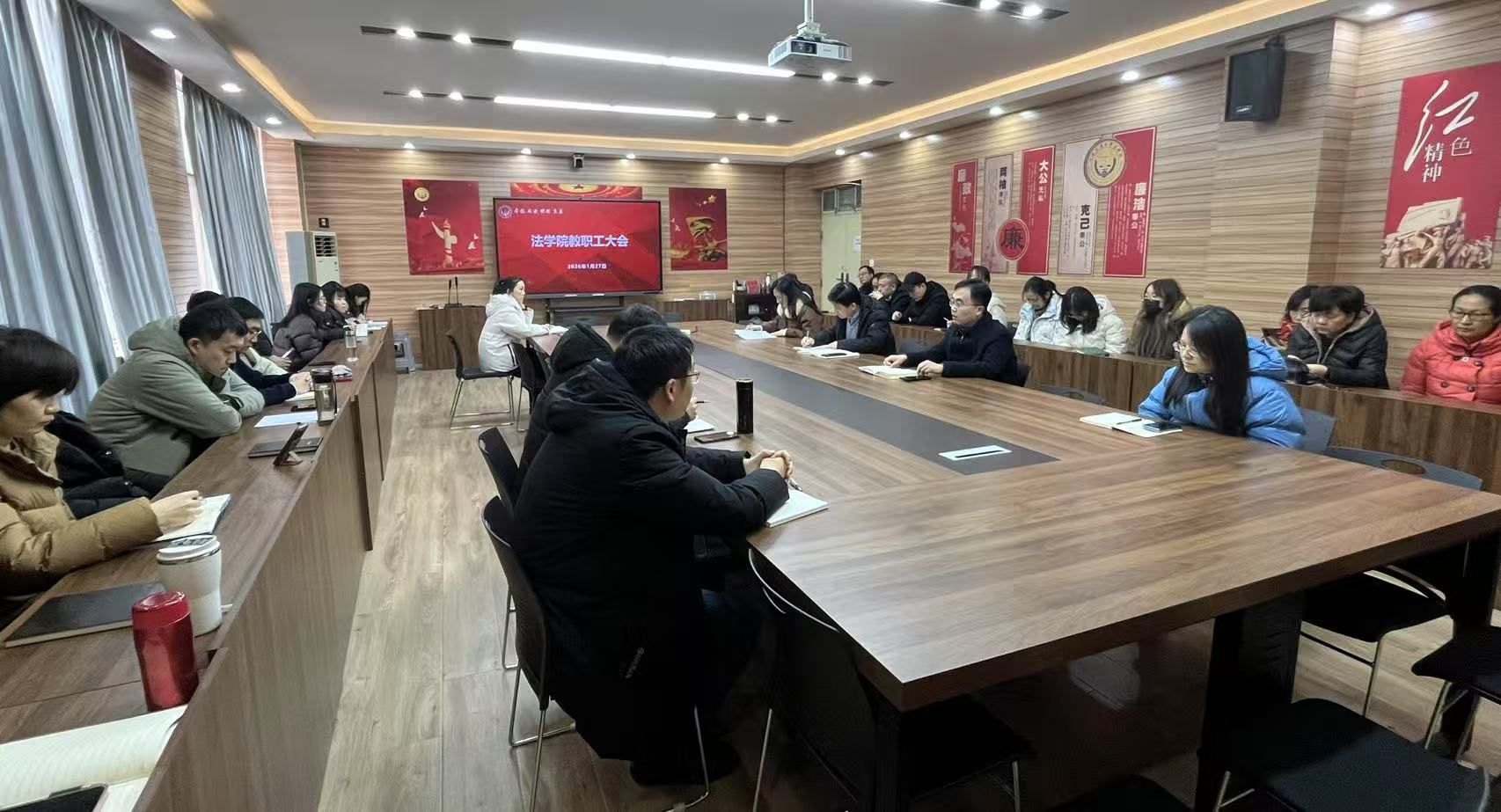 全体教职工大会在博识楼3424会议室举行。韩国av领导班子成员、全体教职工参会。会议由韩国av工会主席、党委副书记张翠华主持。